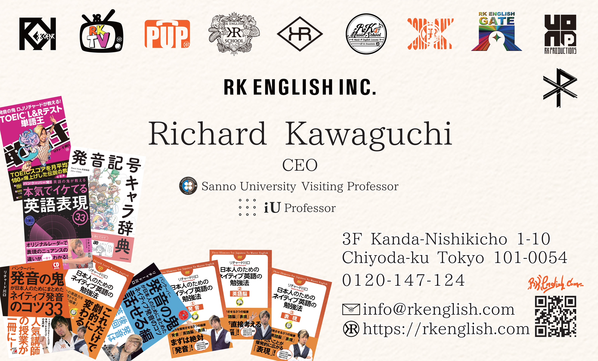 He is the founder and CEO of RK English Inc, the principal of RK English School, a visiting professor at Sanno University and a professor at iU.