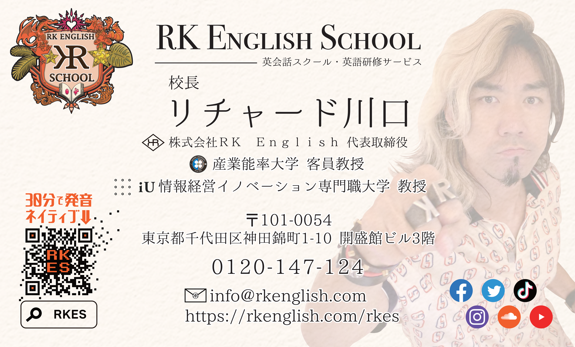 [RK ENGLISH] Richard Kawaguchi リチャード川口 バンクーバー発/バイリンガル日系カナダ人講師による「ネイティブ発音」「表現レーダー」「英語脳」学習 : 名刺 産業能率大学 客員教授