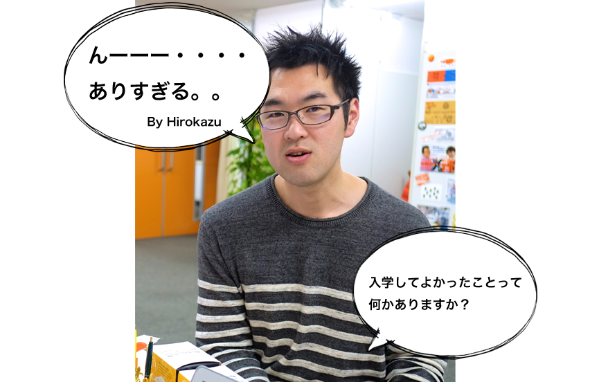 Kazu: 大手では教えてくれない内容。英語の考え方や、またネイティヴの表現を学べ、オリジナリティーを感じる授業が好きな為。