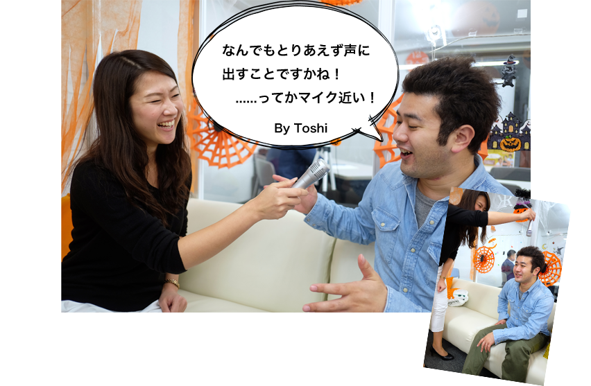 Ayaka: そうですね!!声に出すことって一番大切ですもんね!学ぶ時は受け身ではなく、攻めの姿勢ですよね。そういえば、Toshiさんって何気に先生達全員からレッスン受けてないですか?